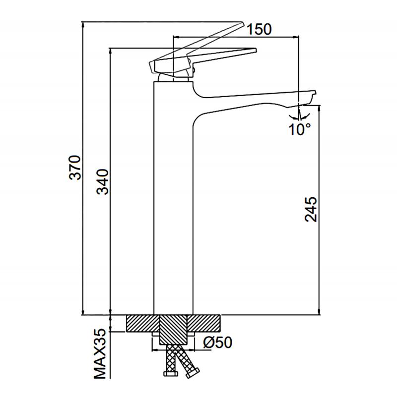 • Высота излива: